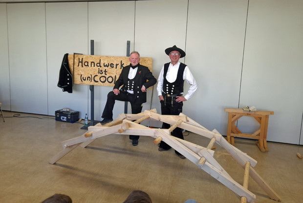 Richard Betz ist Zimmerer mit eigenem Betrieb, abgeschlossenem Architekturstudium und seit 2016 auf Theatertour an Bayerns Schulen unterwegs – organisiert vom Landesinnungsverband des Bayerischen Zimmererhandwerks (LIV). Seitdem hat sich viel getan. Zum einen präsentiert der gebürtige Unterfranke bereits sein zweites Stück, zum anderen hat sich aber auch die Organisation und Gestaltung der Tour stark verändert.